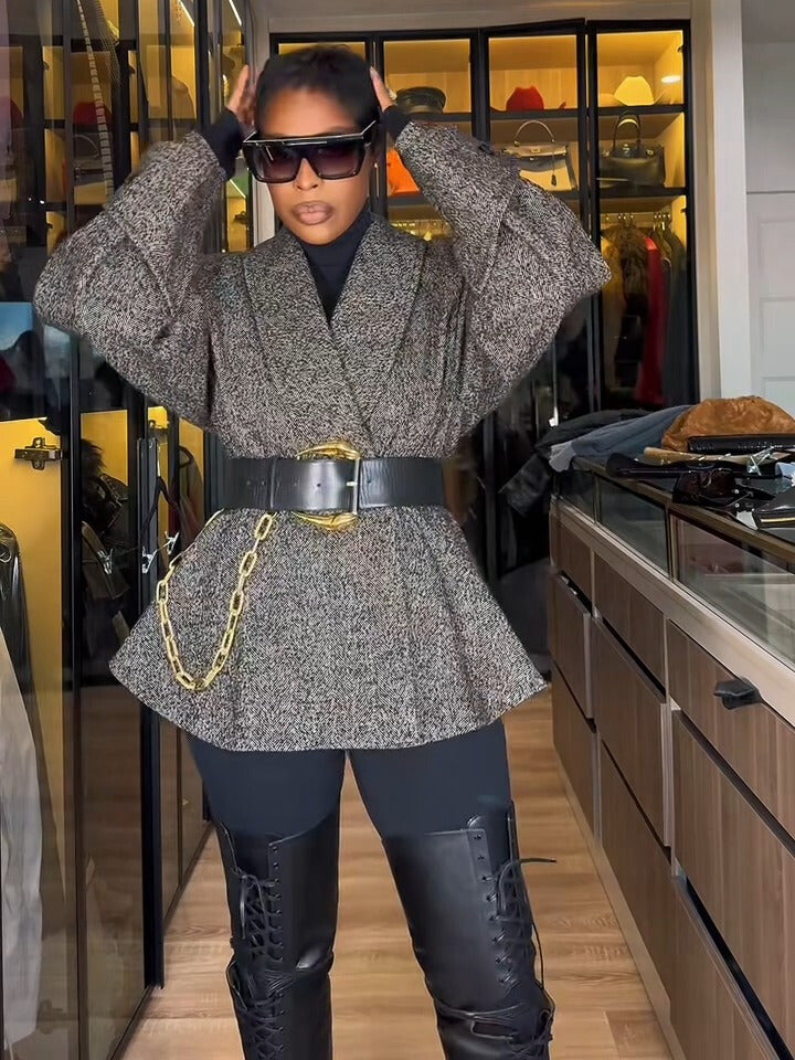 Really impressed with the tailoring. The sleeves are roomy but still look clean, and the waist detail makes it super flattering on curves.