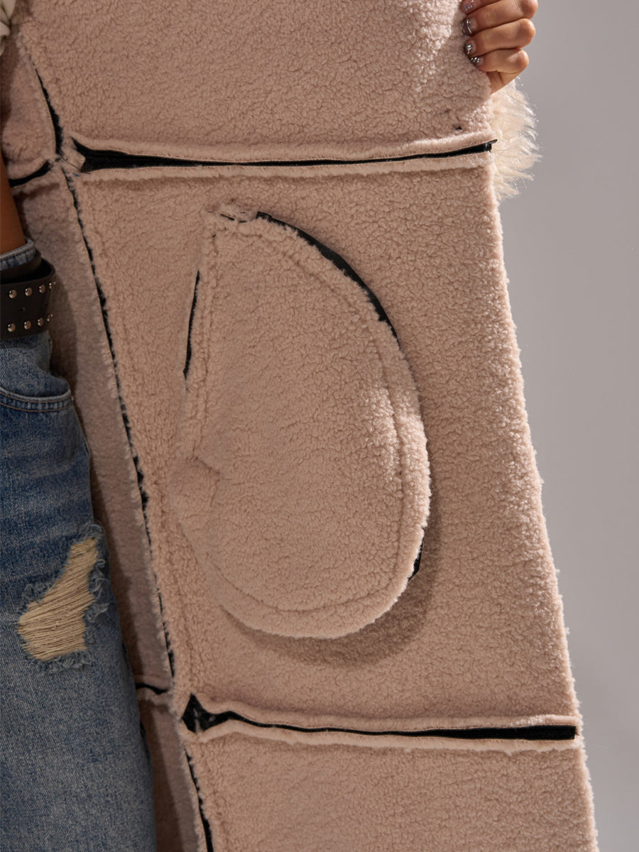 Faux Leather Faux Sherpa Trim Trench Coat