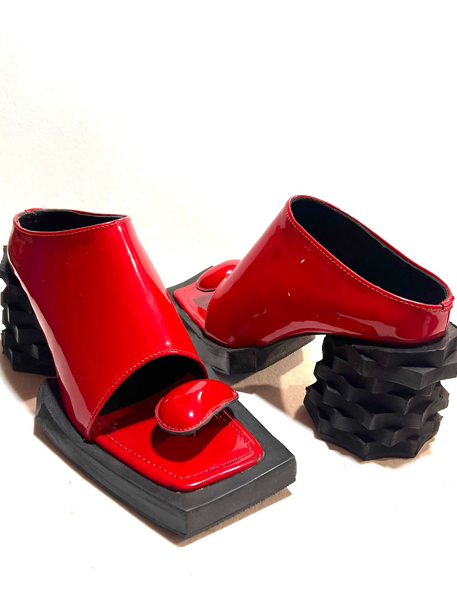 - Decoration:Toe - loop detail, chunky geometric heels, slip - on silhouette.