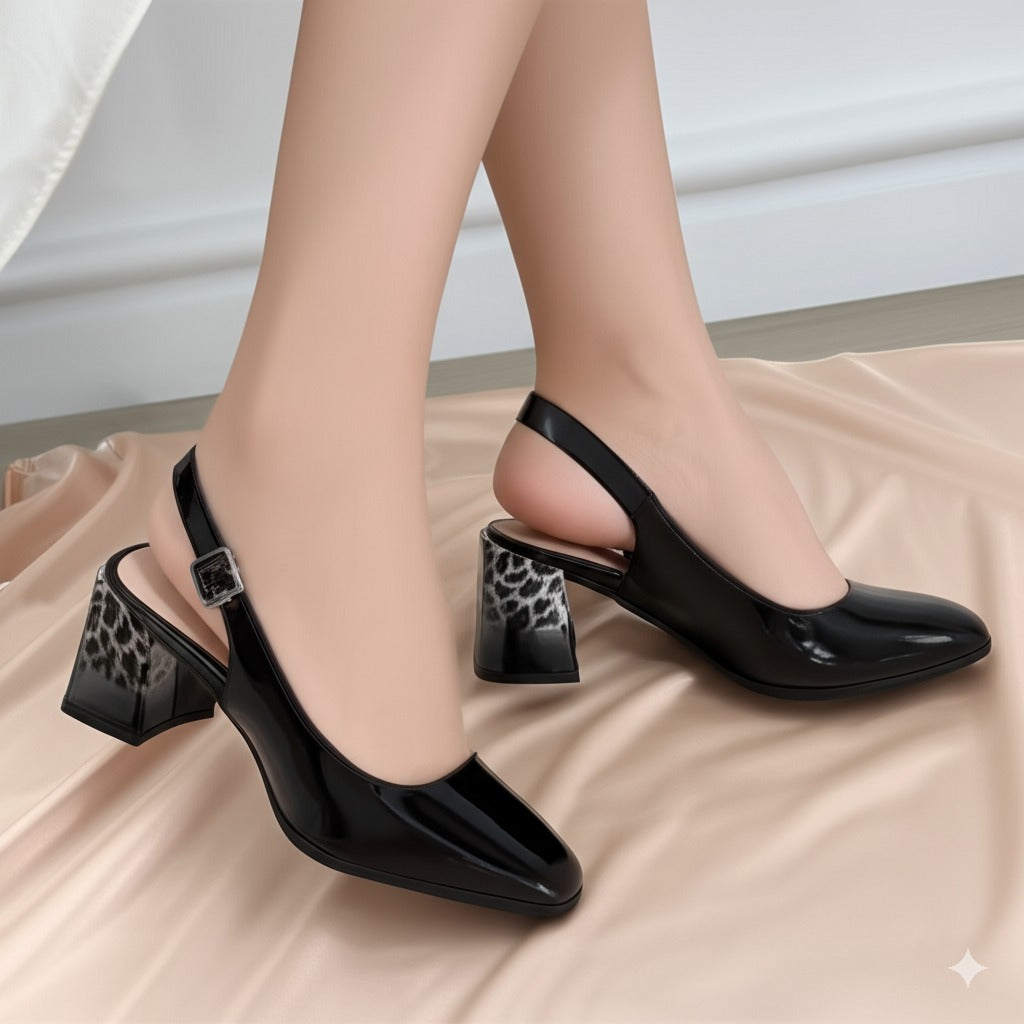 Patent Leather Slingback Block Heels with Leopard Print Heel