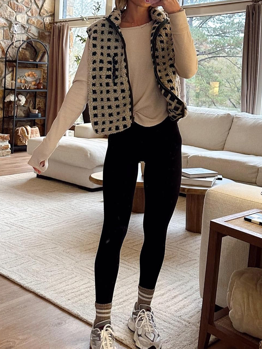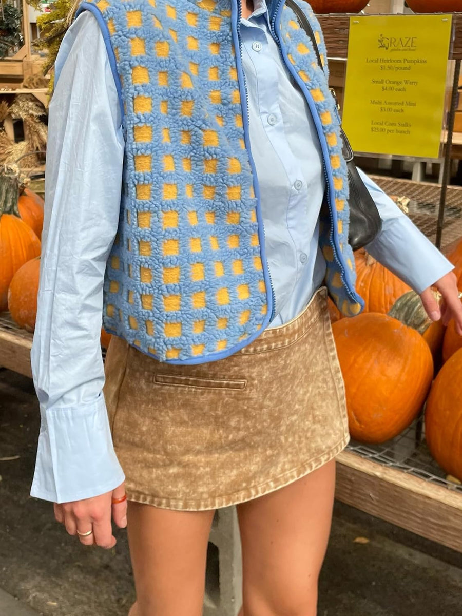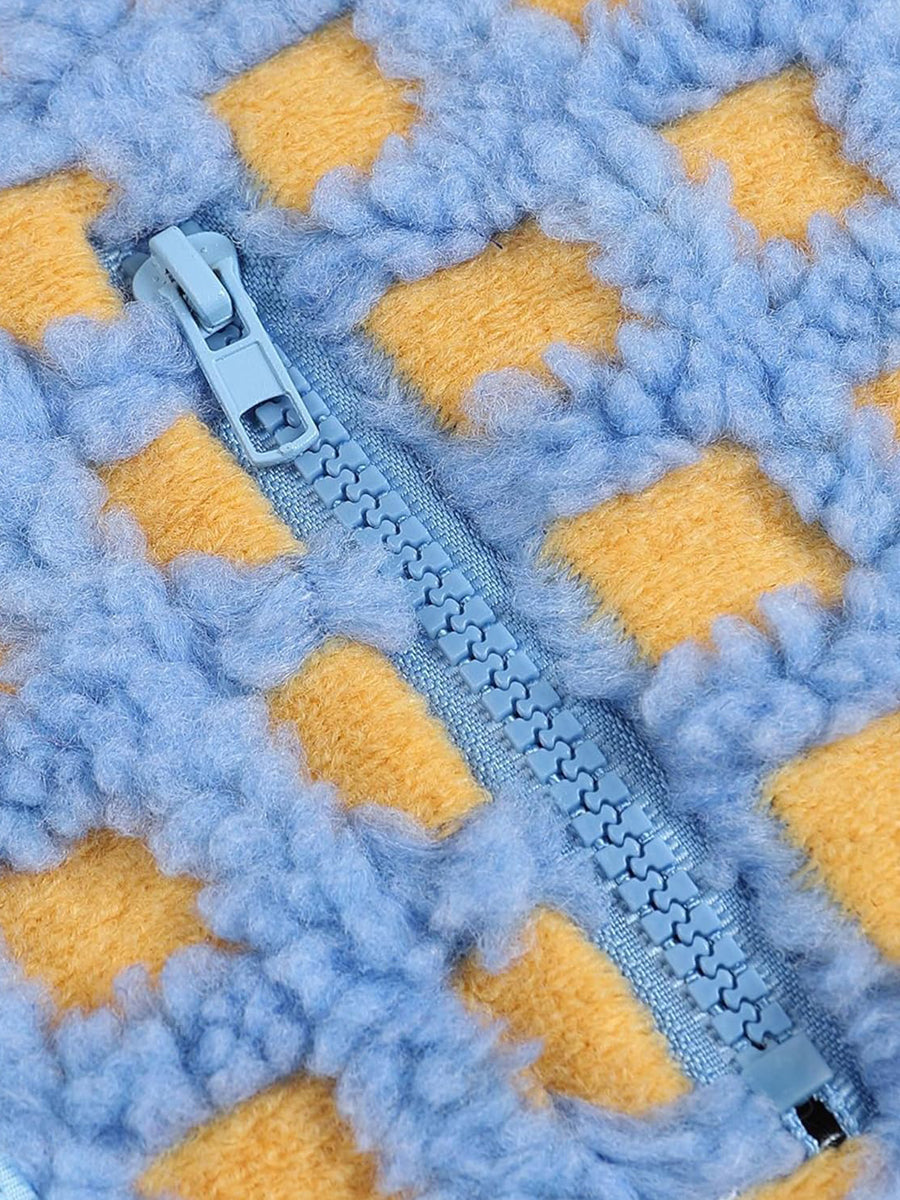 - Style: Adorable and cozy sleeveless vest featuring a charming checkered pattern in light blue and yellow.