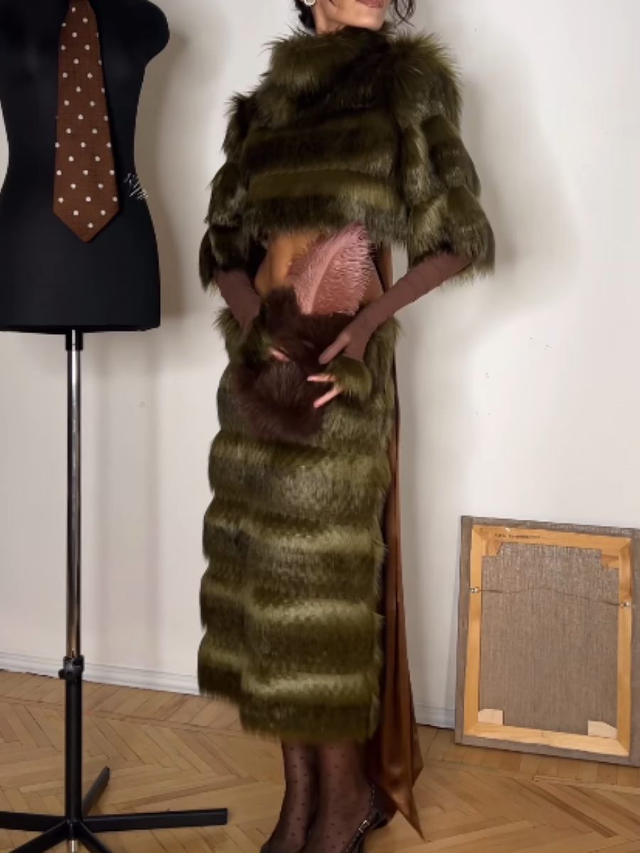 - Style: Olive Green Faux Fur Two-Piece Set, blending vintage glamour and plush luxury.