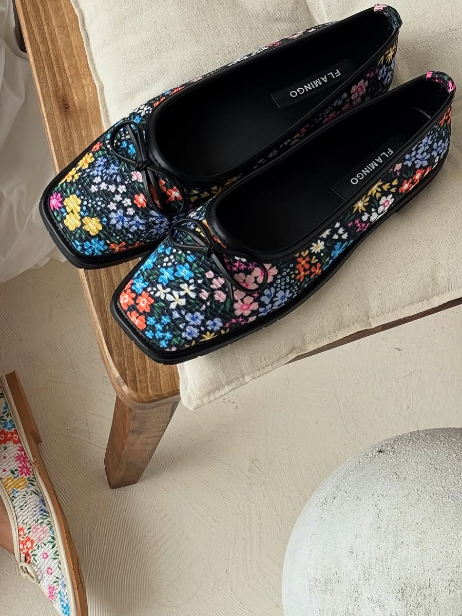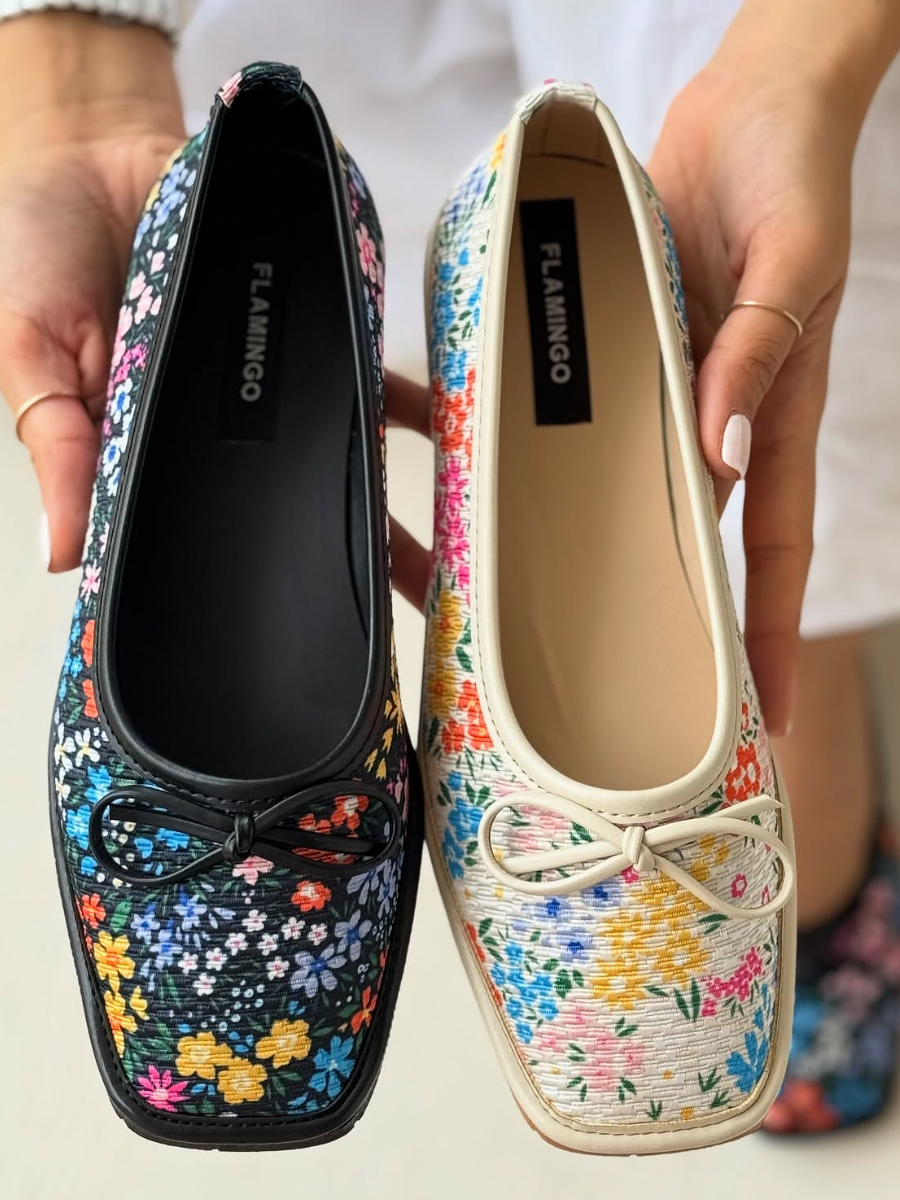 - Style:Ballet flats with floral print and bow detail. Features a feminine, whimsical design.