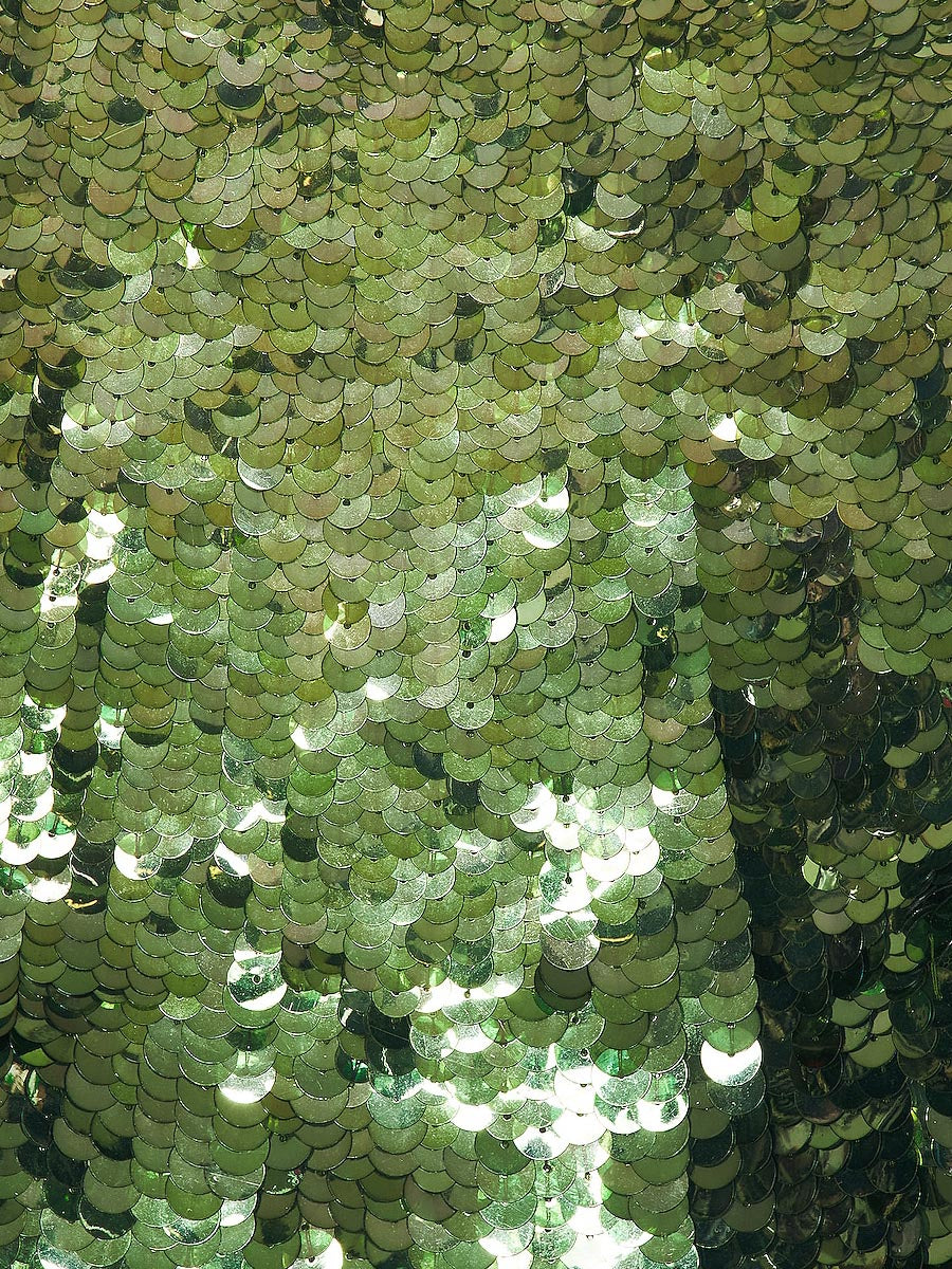 - Material: Sequin fabric (shiny texture); ostrich feather hem (soft & dynamic)