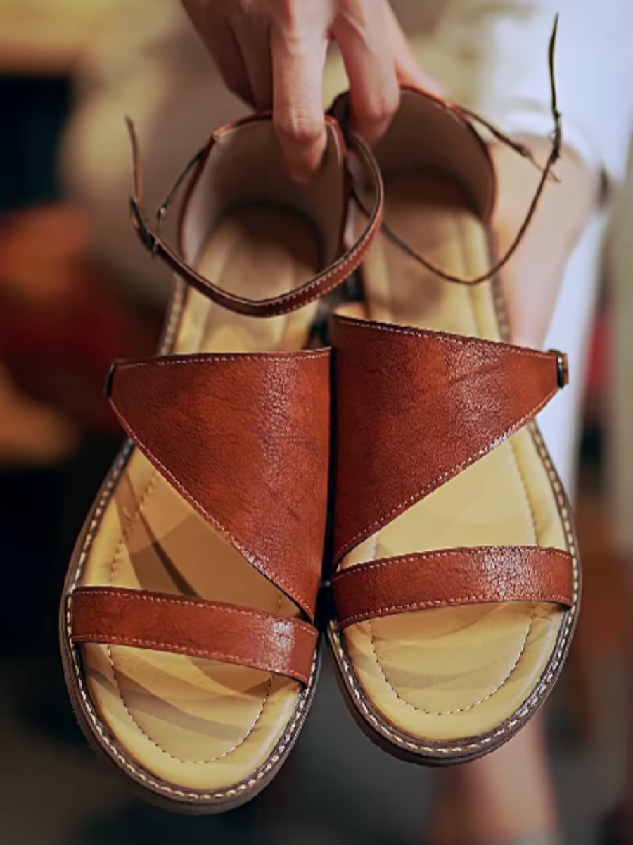 - Style:Flat sandals with ankle strap and geometric strap design. Features a minimalist, versatile look.