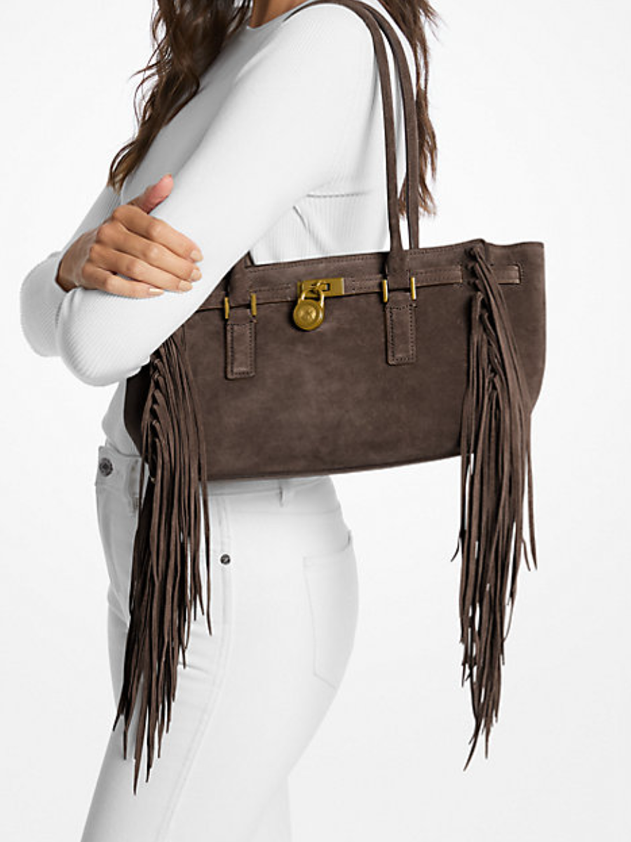 Unleash your unique style with our stunning Suede Fringe Bag. Crafted from rich, genuine suede, its captivating fringes and classic turn-lock closure blend bohemian spirit with sophisticated elegance. Perfect for effortlessly elevating any look, from day to night.