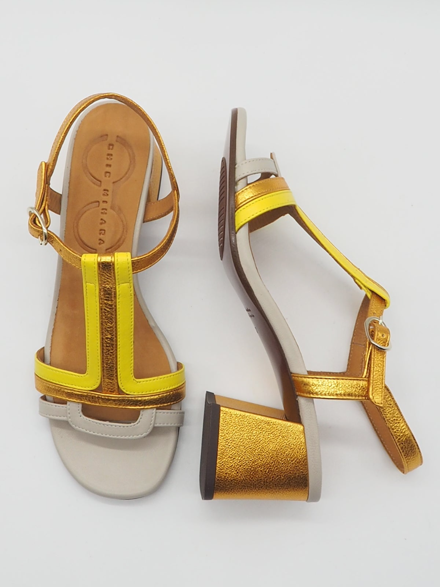 - Style:Block heel sandals with metallic accents. Combines chic and stylish design.