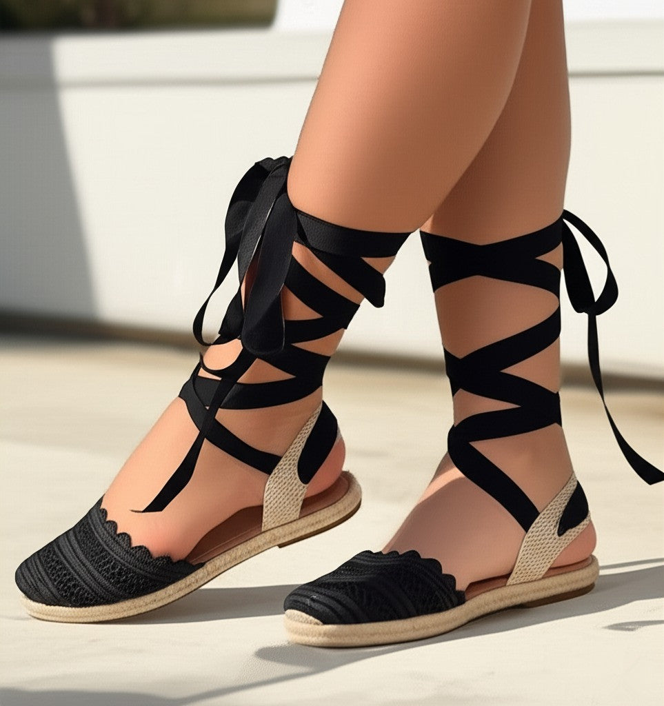- Decoration:Lace - up leg wrapping design, woven texture, espadrille silhouette.